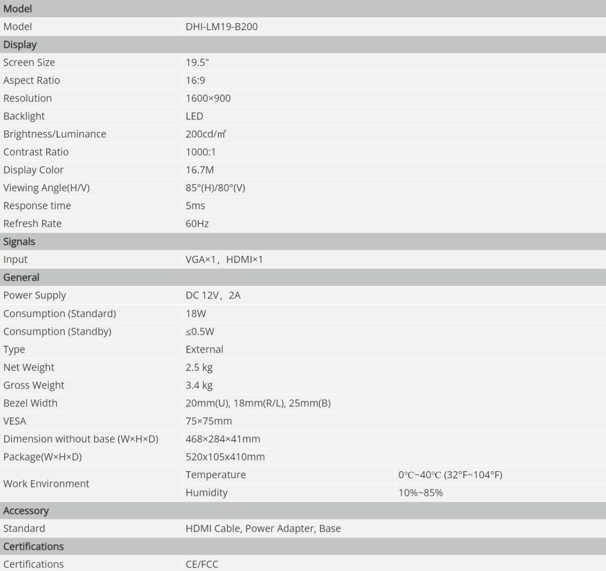 Dahua ( Dahua LM19-B200 19.5" HD 60Hz Monitor )